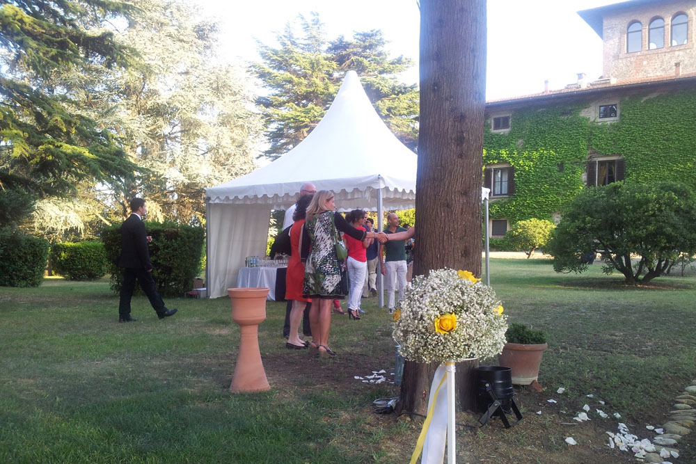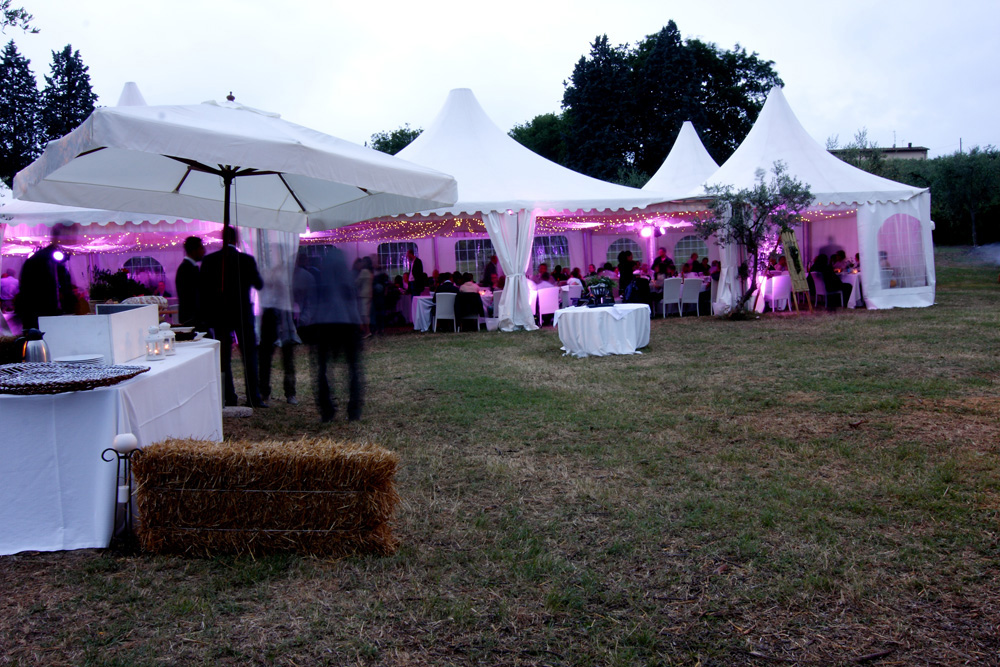 L'allestimento può essere completato con drappeggi in tessuto colore ecru capaci di creare un'atmosfera romantica.